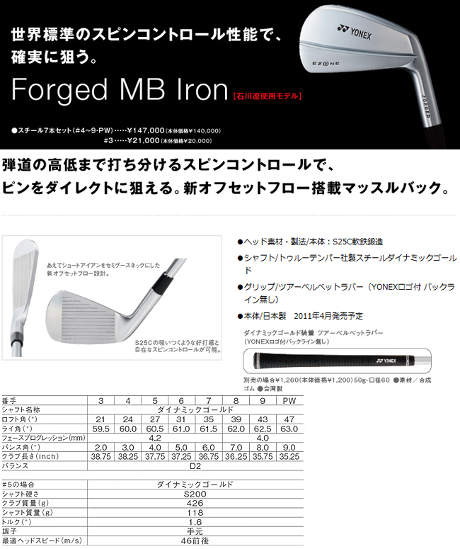 ชุดเหล็ก Yonex E-Zone MB (Forged) มีเหล็ก 5-Pw (6 ชิ้น) ก้านเหล็ก Dynamic Gold S200